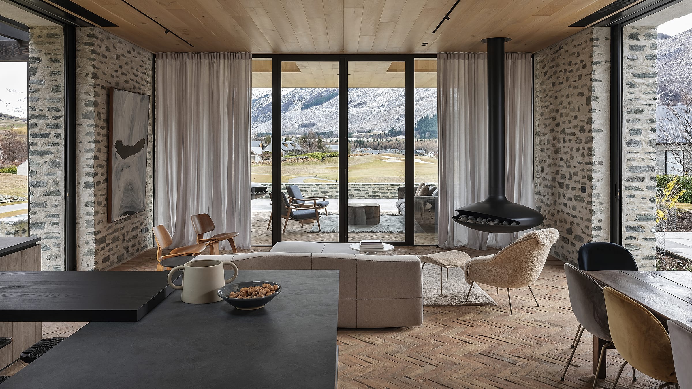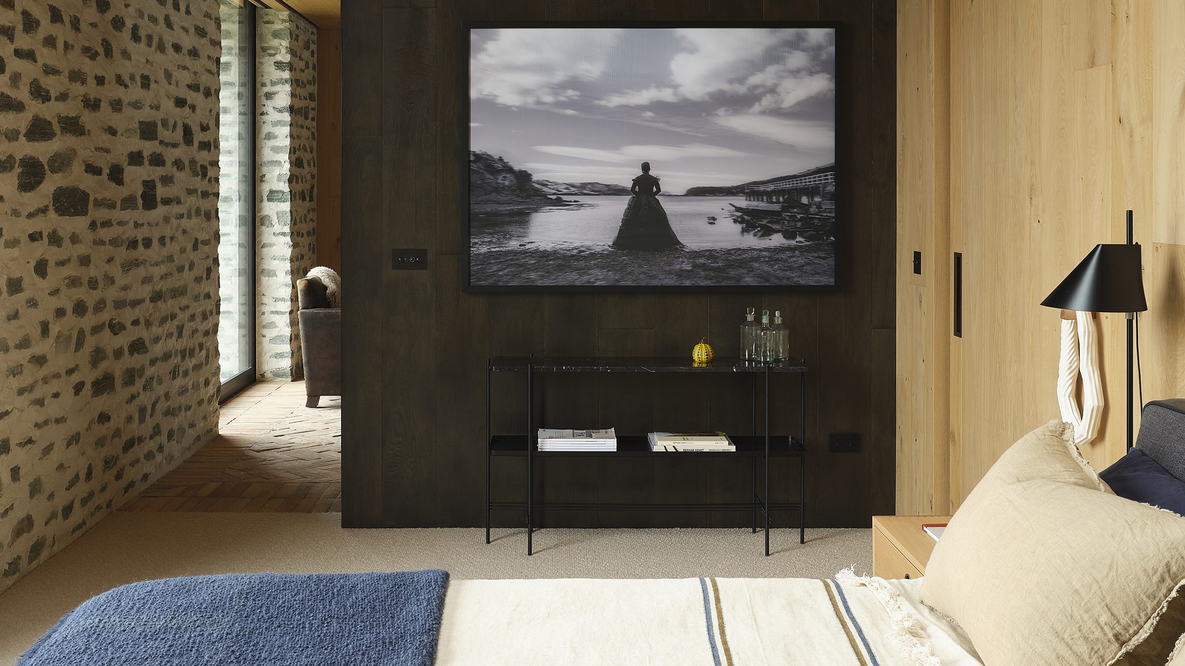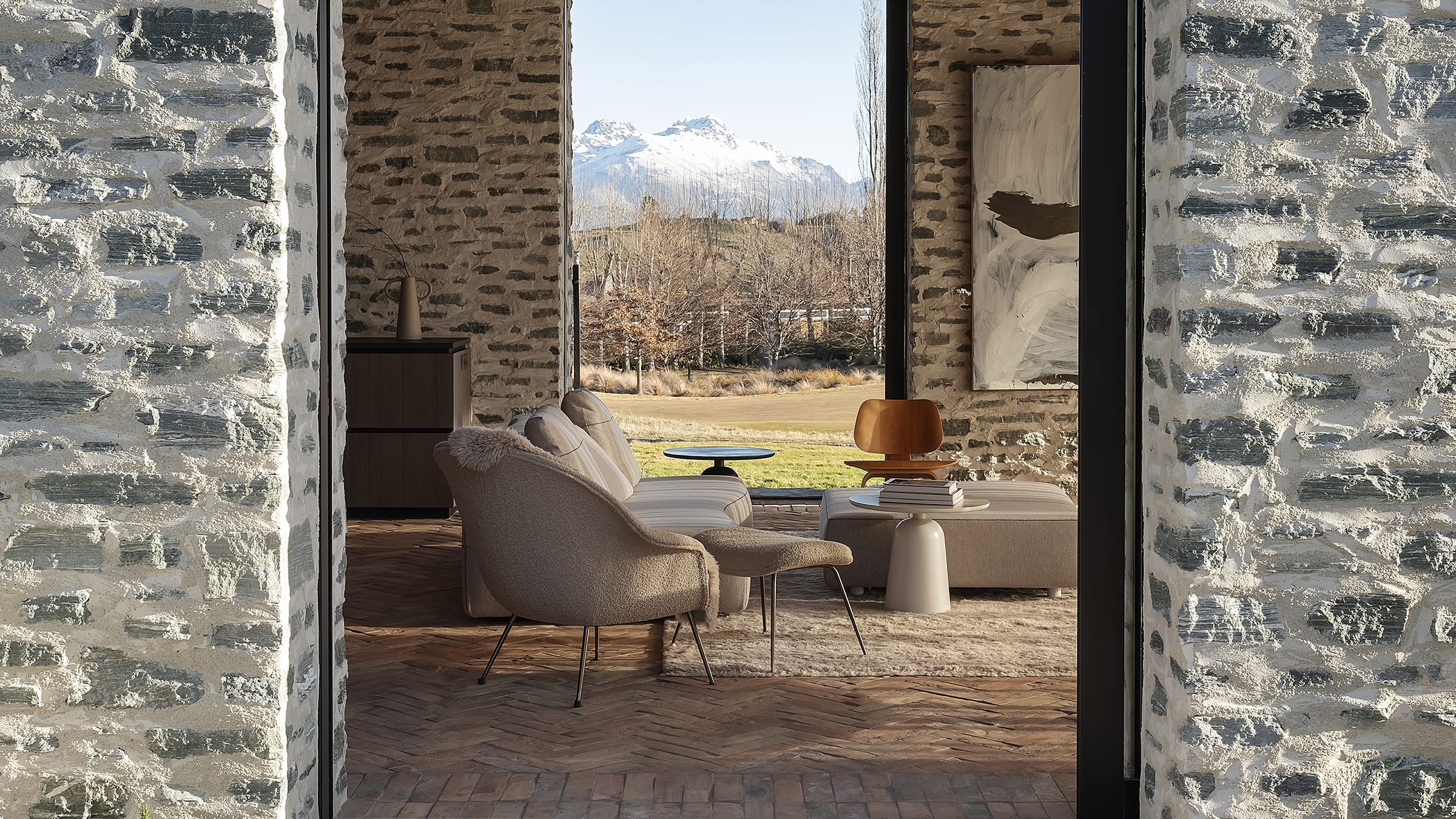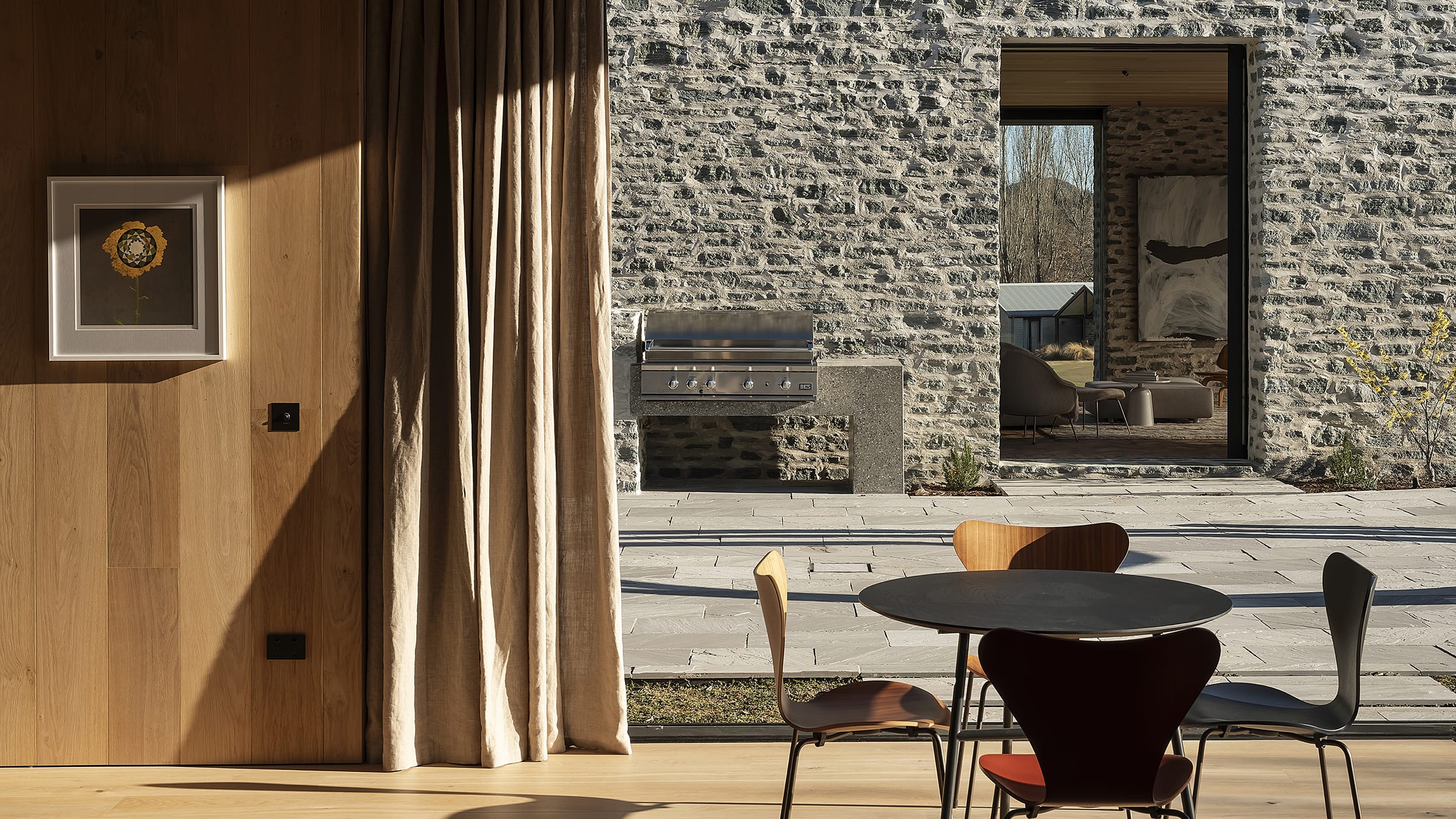 The robust character of Millbrook's rural location served as Sonja's inspiration, guiding the material palette and prompting her to enhance its connection with the landscape. Timber-paneled walls in contemporary hues offer a stately yet refined note, while terracotta — “an ancient material that harks back to historic times” – brings warmth and tactility.