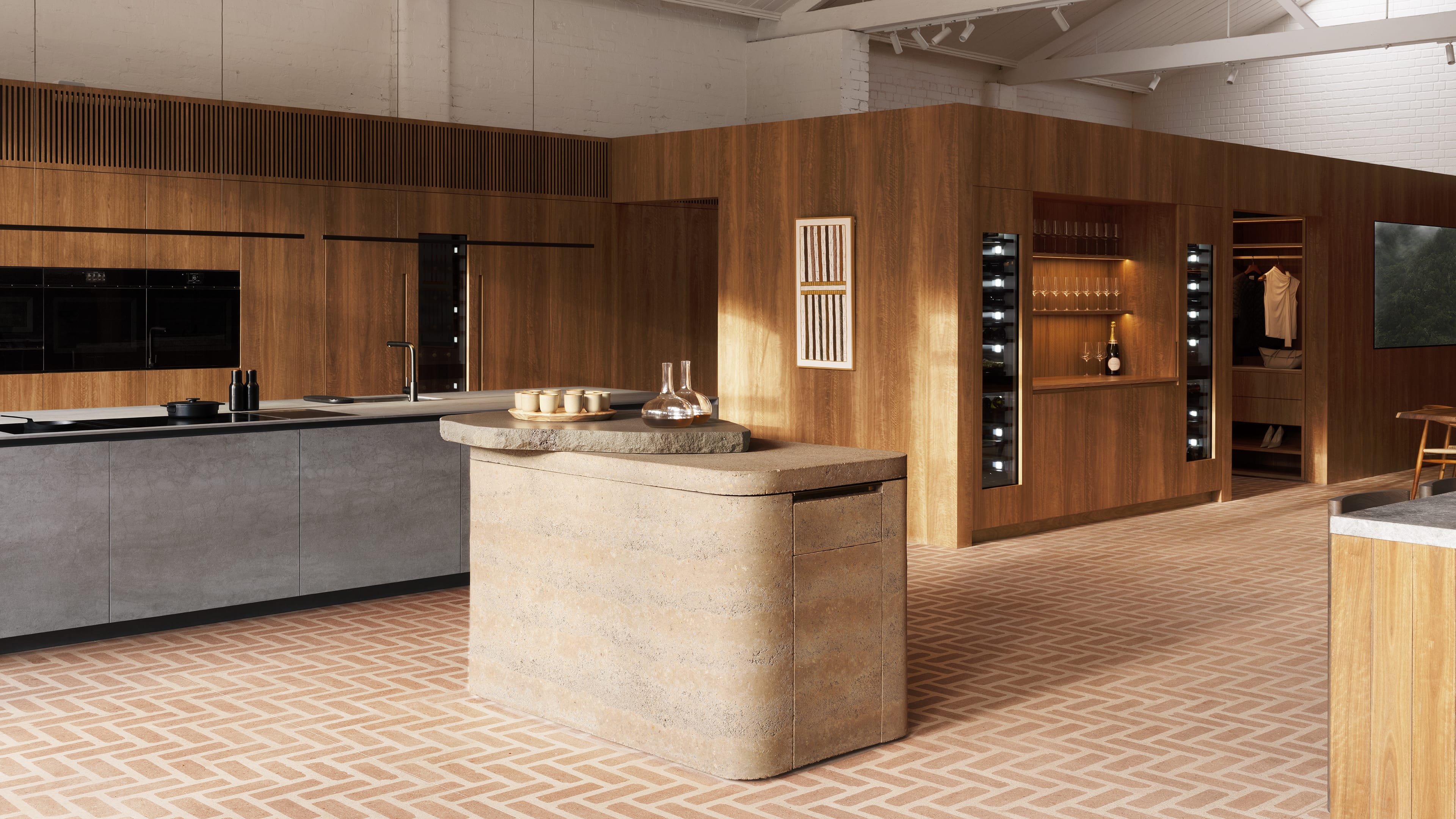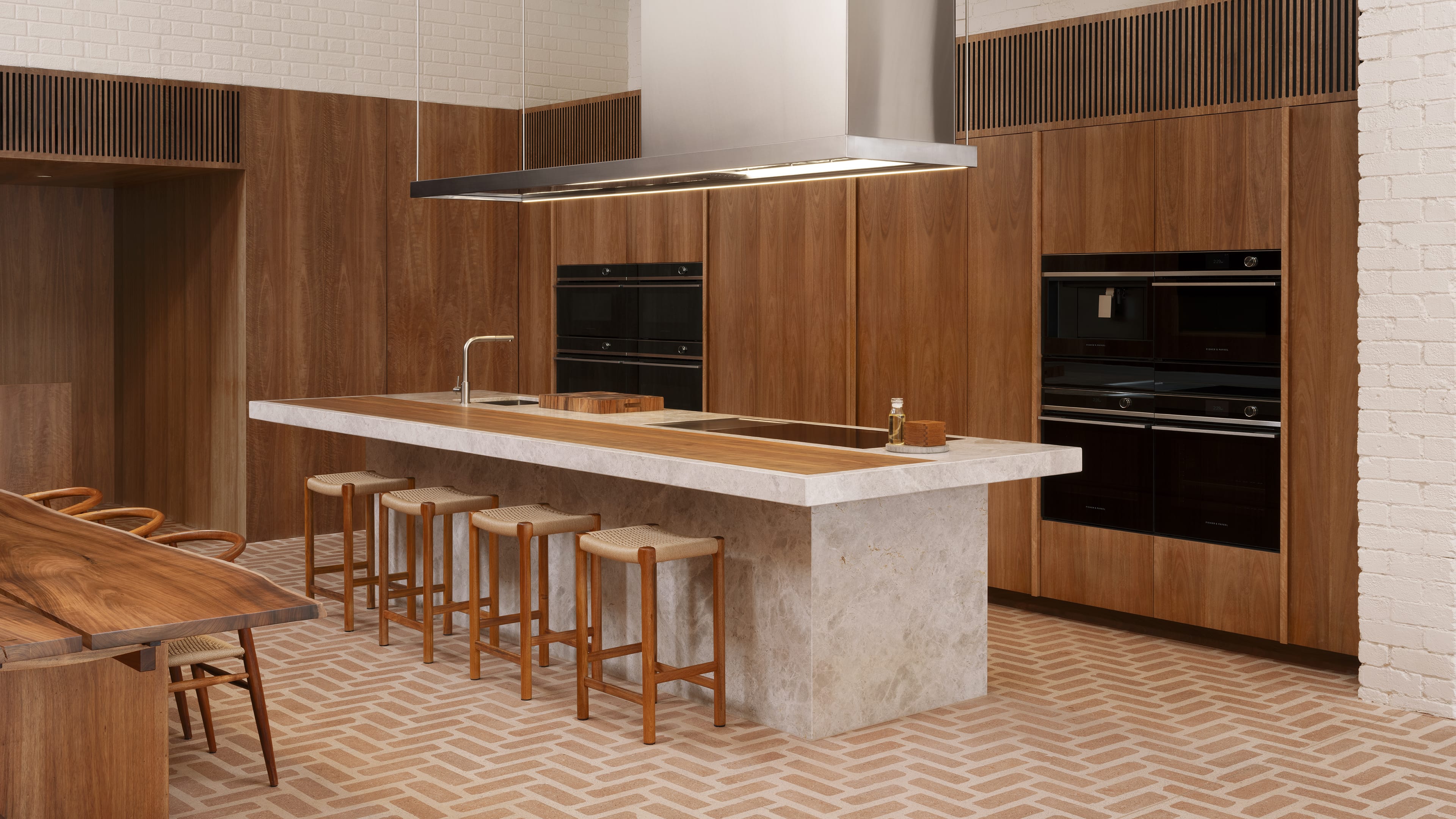 Explore a warm, natural-material driven approach to integrated kitchen and scullery design. With every detail and every finish perfectly considered, this kitchen evokes a sense of luxurious simplicity.